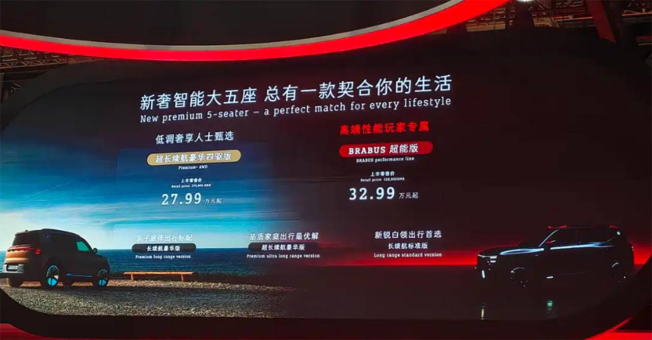 如果预算比较充足,同时追求更刺激的加速体验,那么BRABUS超能版也是不错的选择。相比超长续航豪华四驱版,价格贵了5万元,但是外观更运动,配备了电吸门,还有更强的加速性能,支持城区NOA,座椅材质也调整为翻毛皮。其他地方也有升级,比如采用森海塞尔的20喇叭音响系统,加装了侧踏板等等,总的来说还是值回票价的。