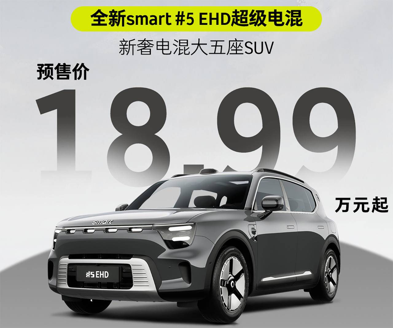 对了,北方地区的用户,或者经常需要长途驾驶的消费者,可能更偏爱混动车型。好消息是smart精灵#5 EHD已经开启预售,搭载一套插电式混动系统,CLTC纯电续航最长达到252km,综合续航里程1615km,感兴趣的朋友可以关注一下,这款车会在10月底上市。